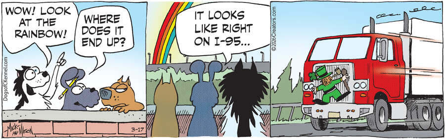 Missing home and family, Mick returned to New York to attend college. With his grandfather Johnny Hart as his mentor, Mick continued to round out his characters and ideas. And in February 2007, Creators Syndicate began featuring Dogs of C-Kennel on their web-site as a comic strip in development.
