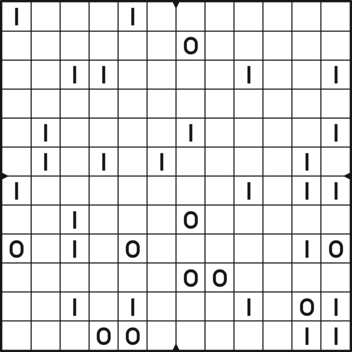 A daily binairo puzzle! Solve each puzzle with only 0's and 1's. Remember: No more than two the same numbers may be placed directly next to or below each other. Every row and every column must contain as many zeroes as ones. The combination of zeroes and ones in every row must be unique, as does the combination in each column.